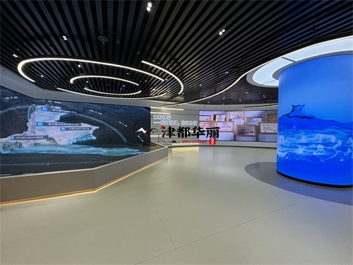今天分享的是银川水利水电办公楼装修设计实景照片,整体而言,该办公楼空间是银川装修公司津都华丽对“专业行业办公展厅”的优质落地:以极简工业风为基底,用科技载体承载水利水电的专业叙事,在功能实用性与主题表达力之间找到平衡,既展现了行业的硬核科技感,又传递了水利工程的人文价值。材质与细节上,银川装修公司津都华丽的“实用美学”理念贯穿其中:展墙采用模块化金属嵌板,既符合水利展厅的科技质感,又满足内容更新的弹性需求;灯光系统以间接照明为主,环形灯带与嵌入式射灯的组合,既保证空间明亮度,又通过光影层次营造科技氛围;而流线型展陈台的圆角设计、地面的隐形收边工艺,则体现了津都华丽在工业风设计中“细节柔化”的巧思。