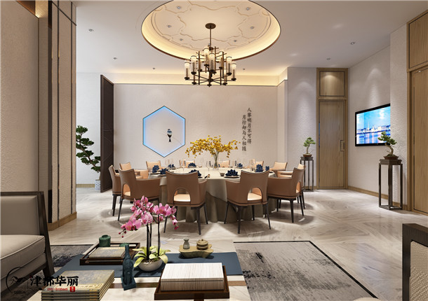 今天分享的是银川餐厅装修设计案例,本案餐厅设计保留传统的端庄典雅,同时满足当代用餐需求的表达,以打造东方与西方并存、传统与现代共生、时尚与复古俱在的高端用餐空间为目的,呈现主题鲜明又极富东方气质的空间氛围。空间除了艺术和视觉美感,设计师更多考虑的是从经营者的角度以空间设计带动商业价值,并从消费者的视角去感受空间的愉悦度以及归属感。包间设计均采用简约化的中式家具,古朴中又带点新意,同时不乏儒雅的韵味,勾勒出一种清新脱俗自然和谐的韵味,尽显独特、尊贵且与时俱进的格调,精致的细节,将新中式的雅致缓缓释放。