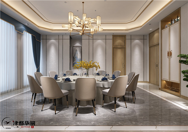 津都华丽15年专注商业空间装饰设计,好的空间设计,自带流量,请相信津都华丽专业的力量,中式风格的餐厅设计中通常会设计一些古典艺术气场的装修物,便于可以更强的渲染出传统的古代韵味。餐厅中能够选用挂壁式的古典艺术的艺术品,或是是一副仕女图、当然画等具备表现力的装饰物,可以为餐厅内增加古典、清雅的气场。